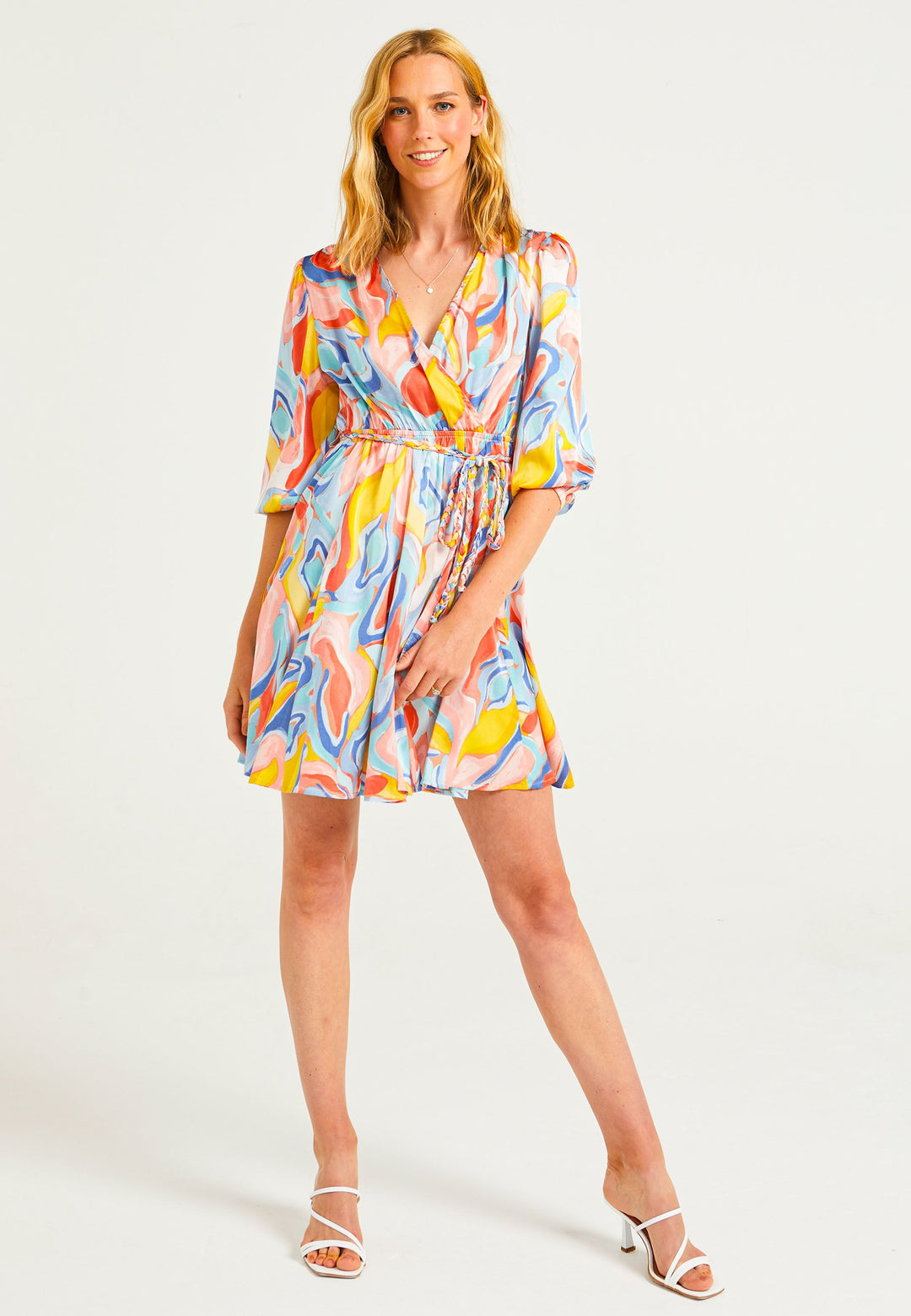 Asymmetric Tie-Waist Knit Mini Dress – Taupe