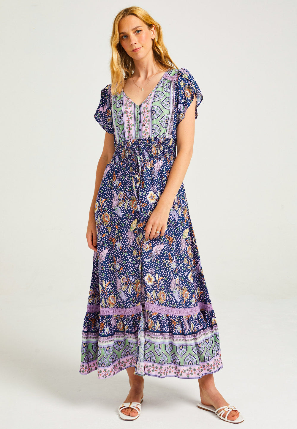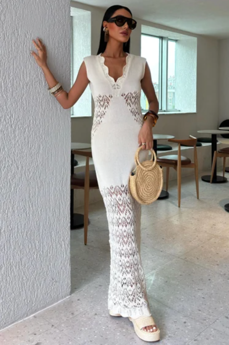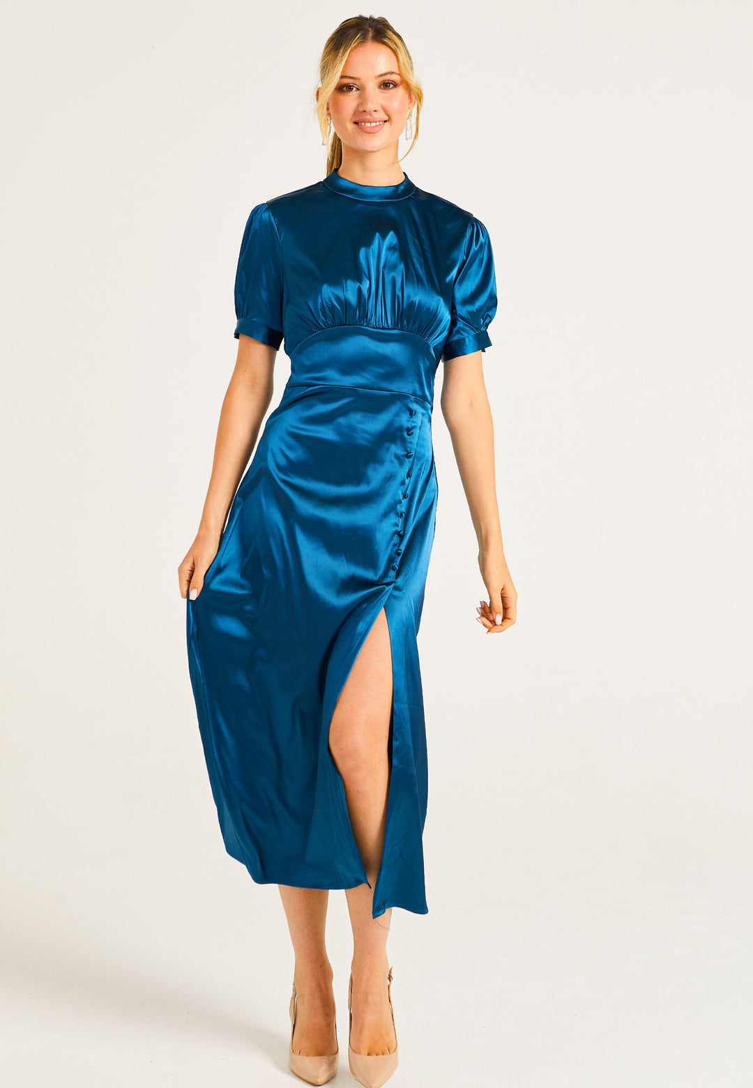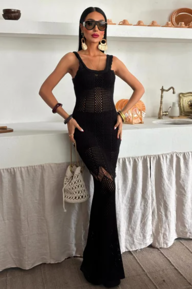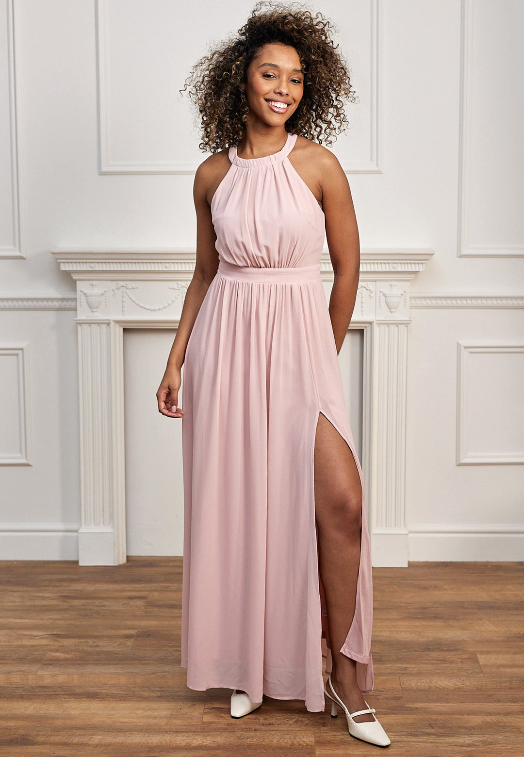 Stacey Mesh Diamante Stud Side Split Maxi Dress