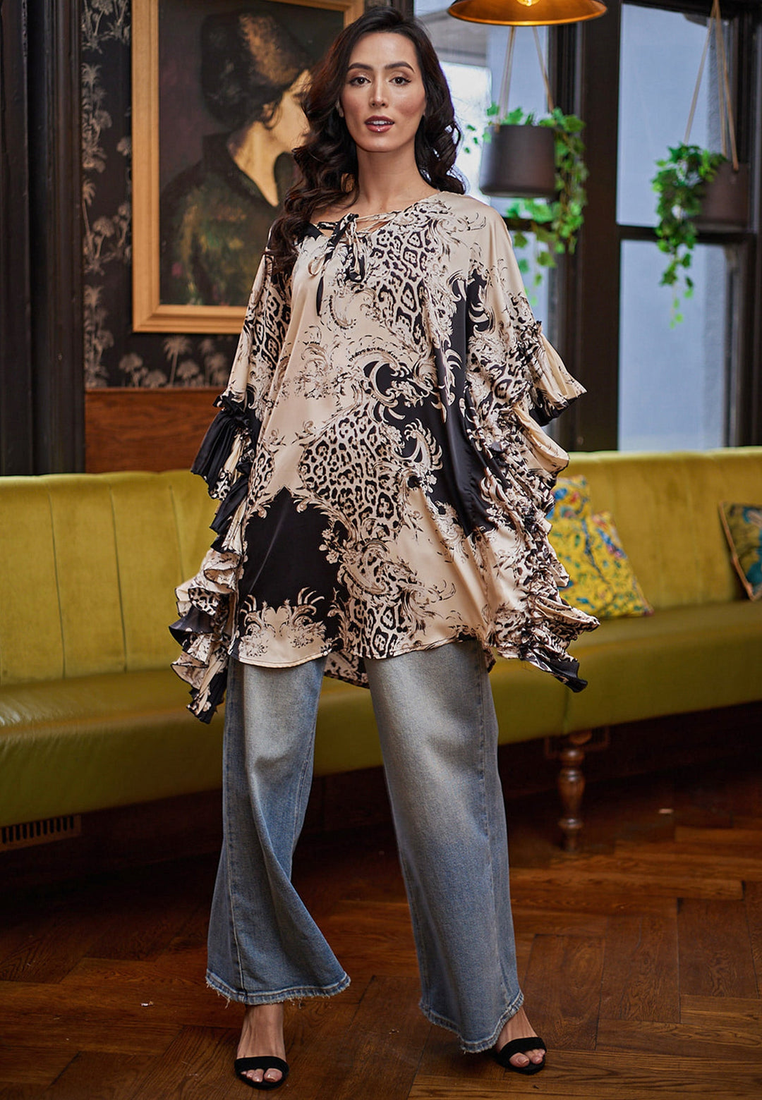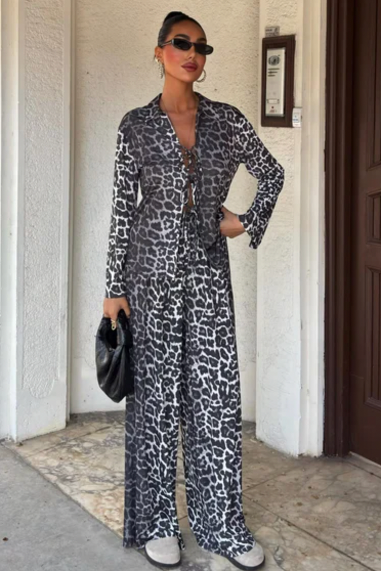 Leopard Tie Detail Soft Knit Jumper in Light Mink