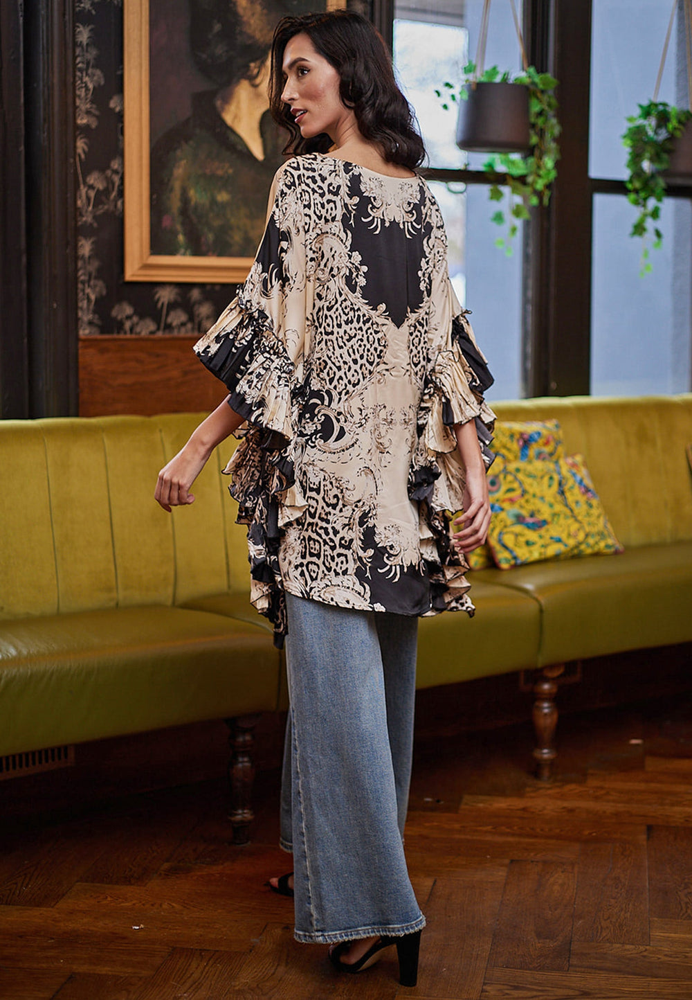 Leopard Tie Detail Soft Knit Jumper in Deep Brown