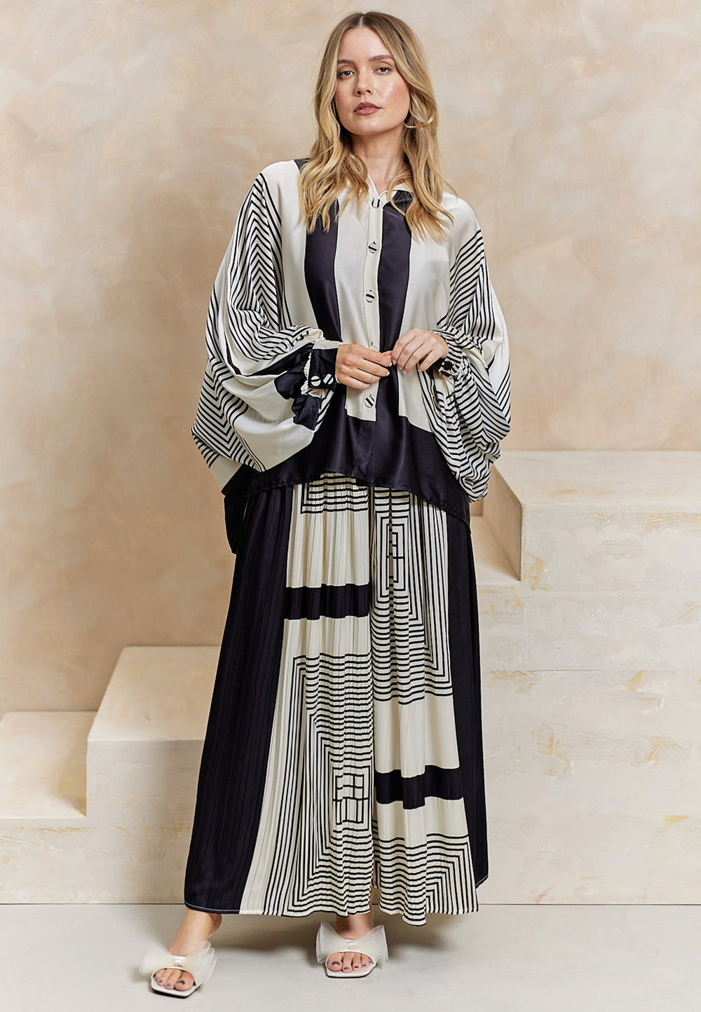 Asymmetric Check Chiffon Midi Skirt in Bordo
