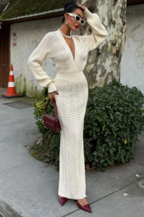 Sleeveless Knit Jumper with Matching Scarf in Cream