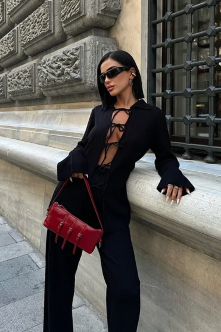 Asymmetric Tie-Waist Knit Mini Dress – Chocolate