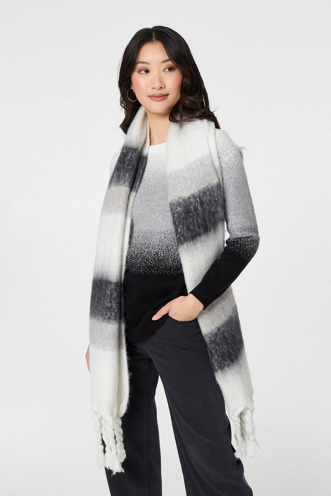 Black Off-Shoulder Striped Knit Sweater with Button Details