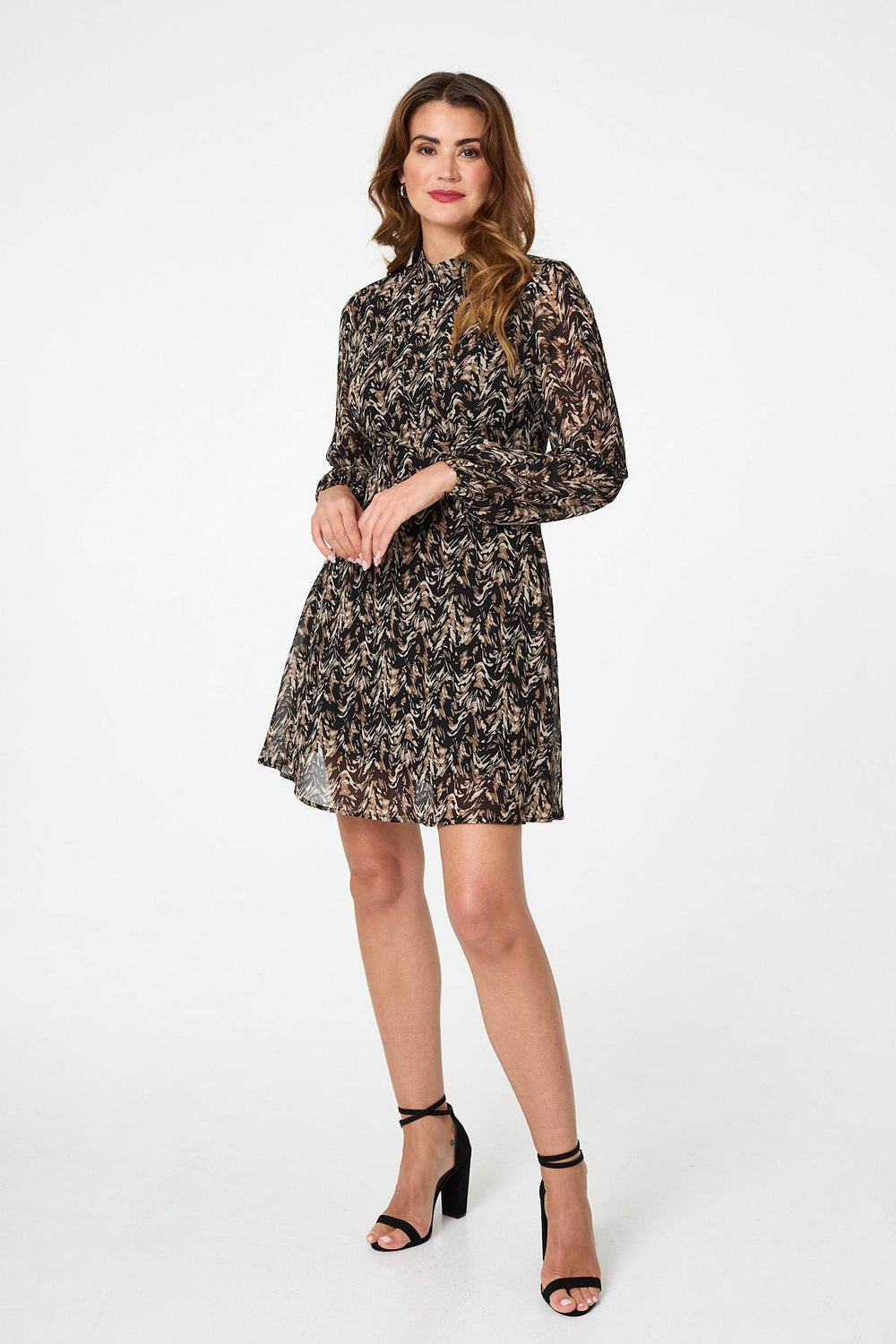 Abstract Semi Sheer Short Skater Dress