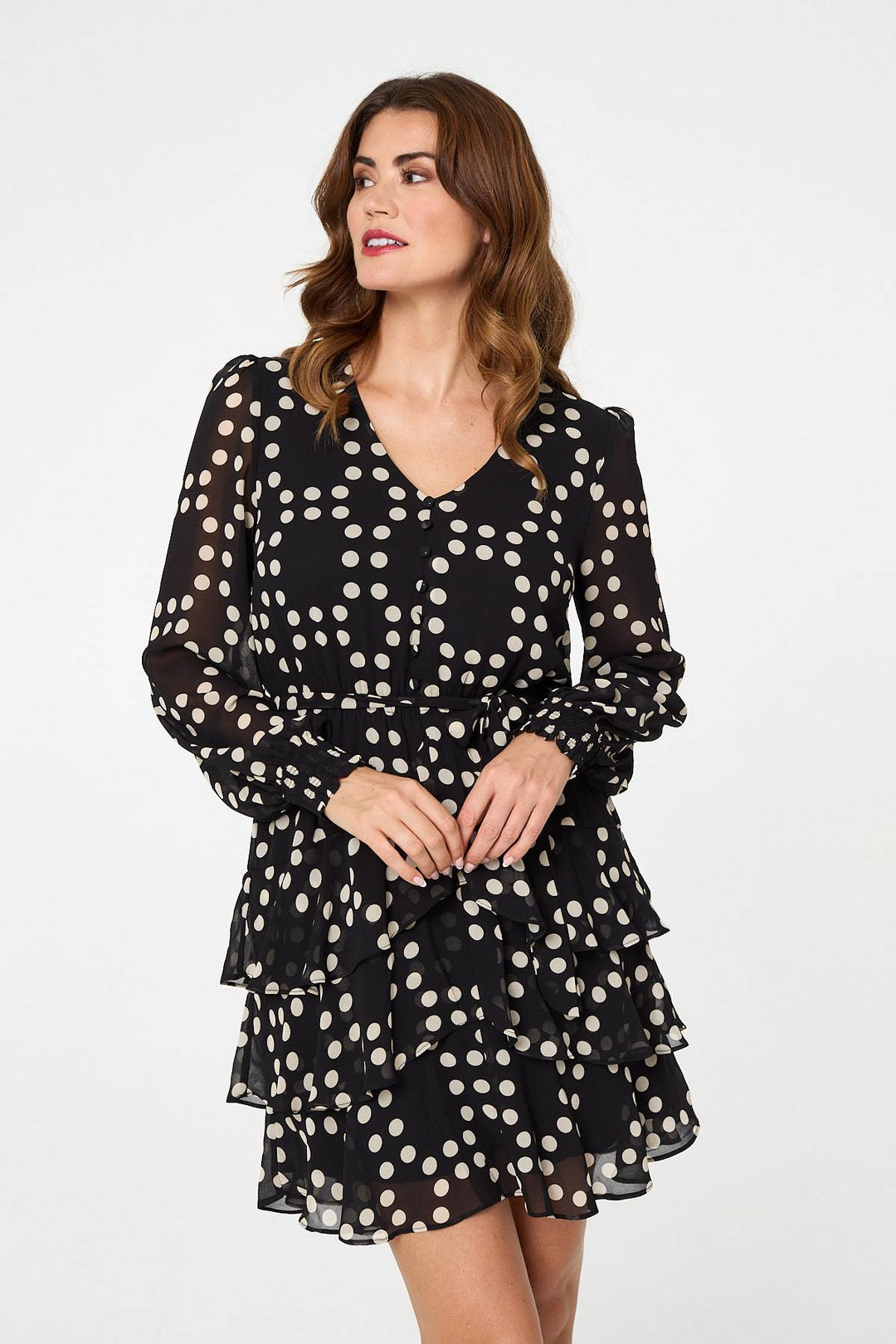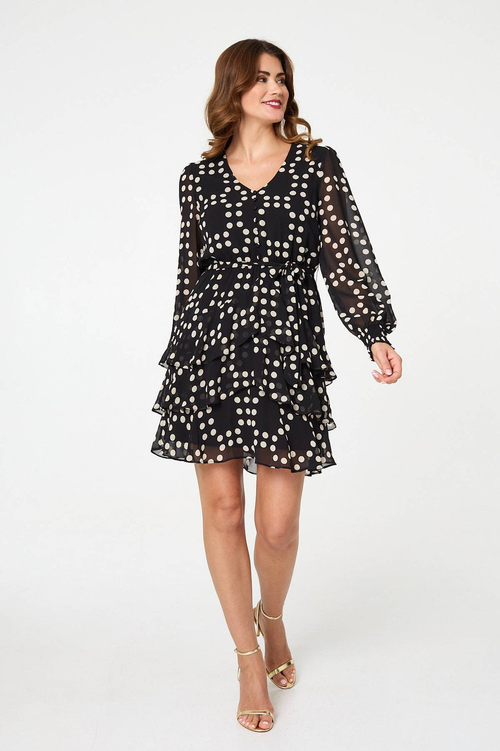 Polka Dot Semi Sheer Layer Short Dress