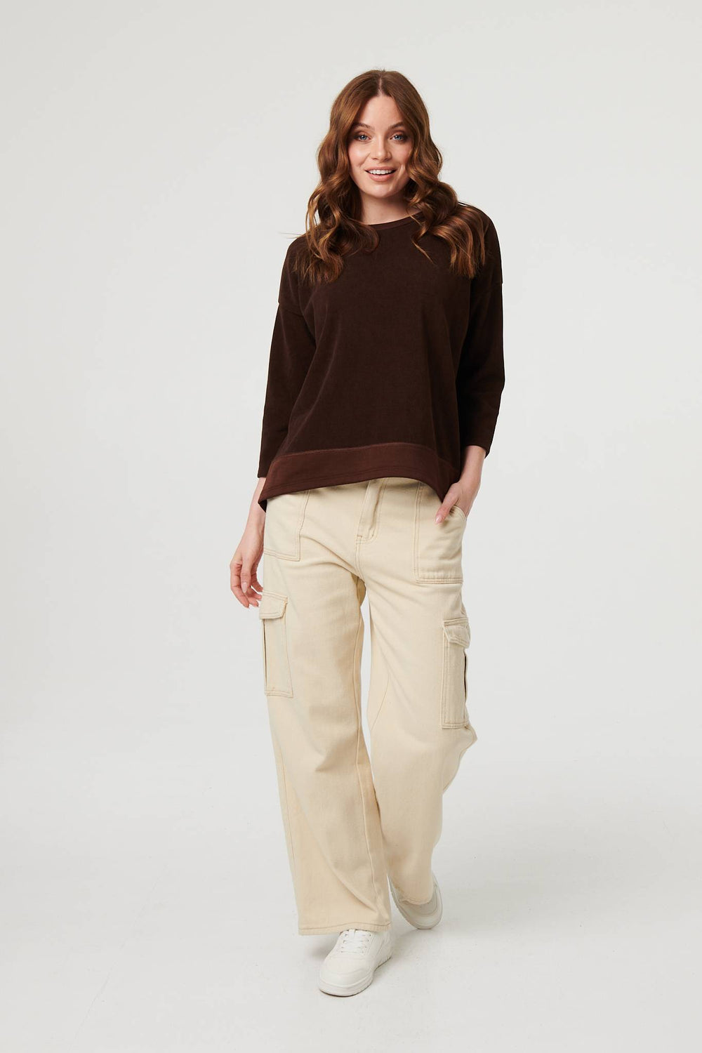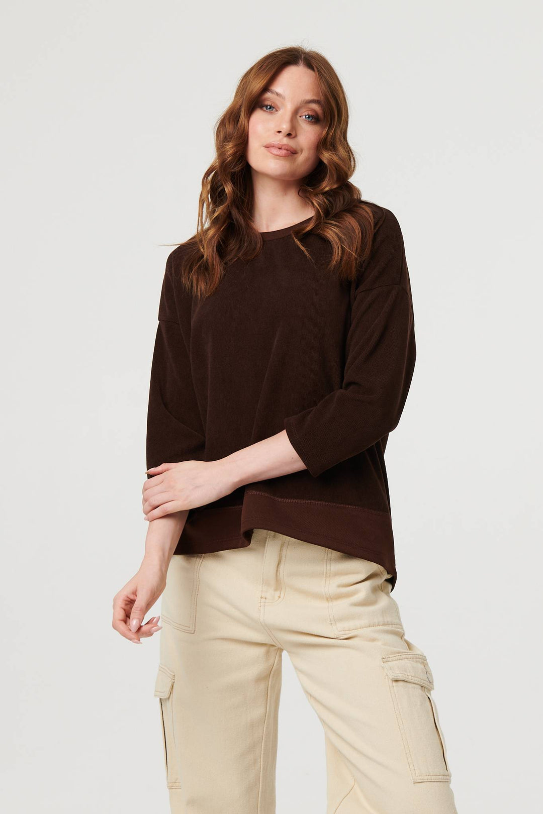 Contrast Hem Relaxed 3/4 Sleeve Jumper