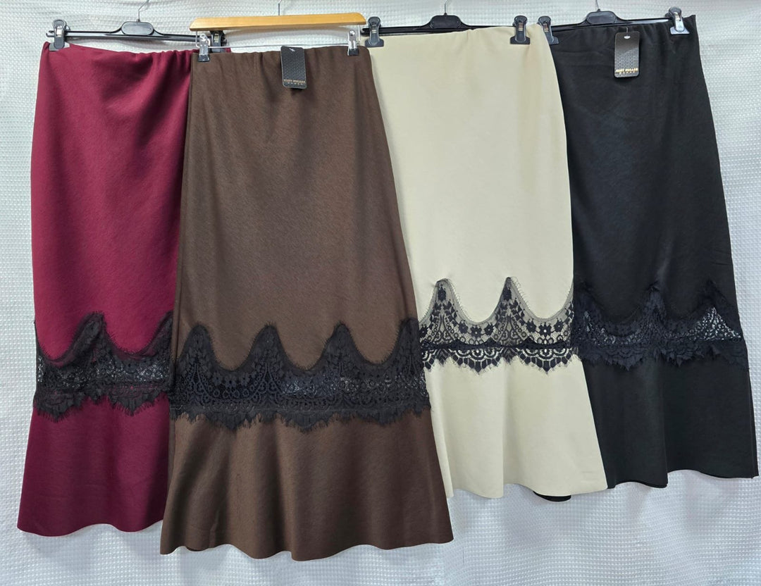 Lace Panel A line Soft Stretch Skirt