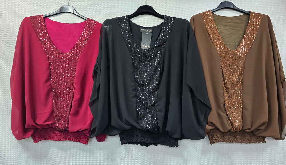 Sequin V Angel Sleeve Top