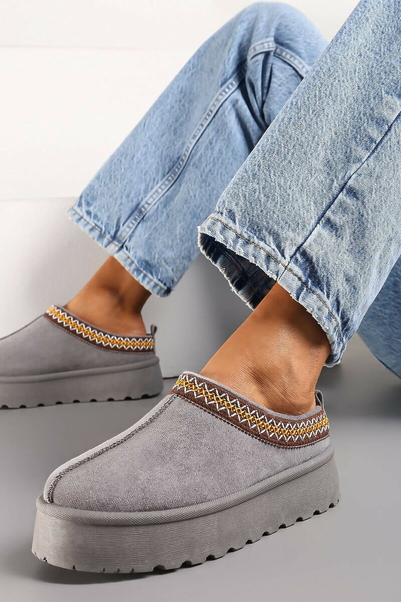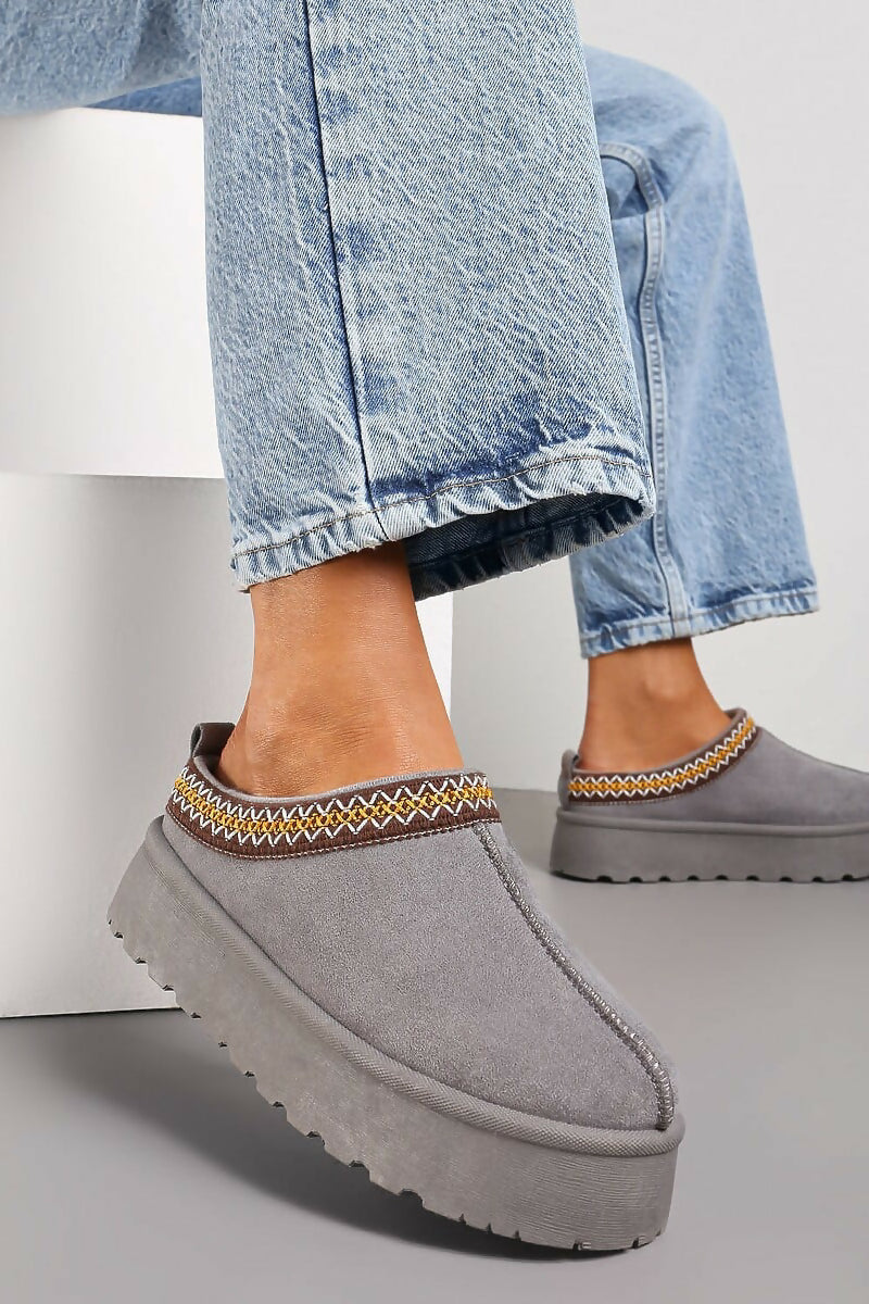 Grey Suede Fur Collar Lace up Ankle Boots (PACK OF 12 PAIRS UK3-UK8)