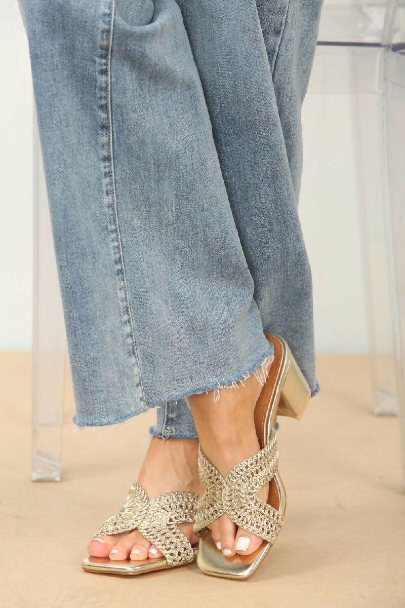 KNITTED BLOCK HEEL MULES IN GOLD (PACK OF 12 PAIRS UK3-UK8)