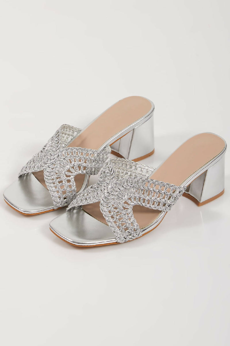 KNITTED BLOCK HEEL MULES IN SILVER (PACK OF 12 PAIRS UK3-UK8)
