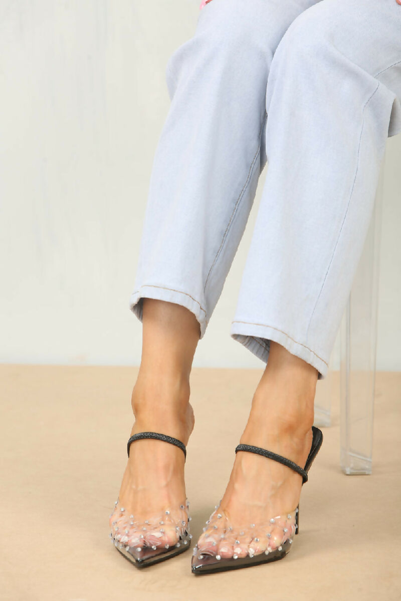Black Diamante Detailed Perspex Sling back Heel (PACK OF 12 PAIRS UK3-UK8)
