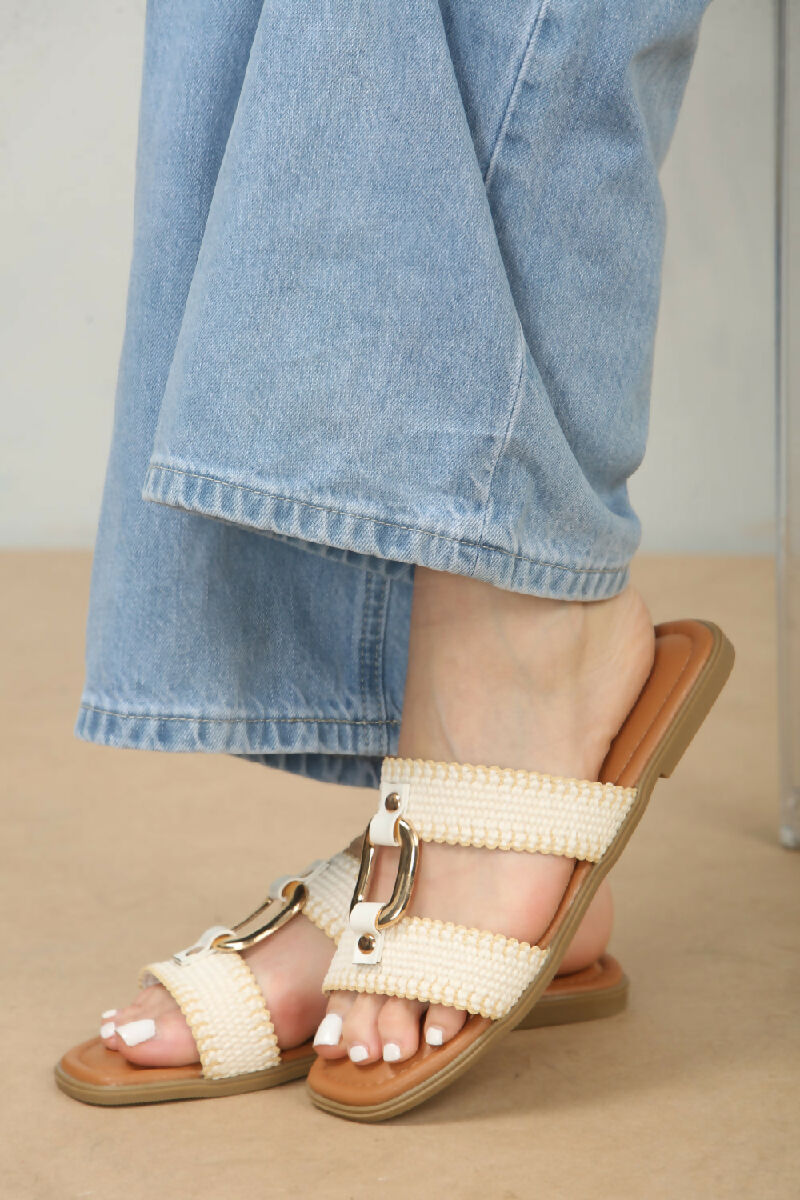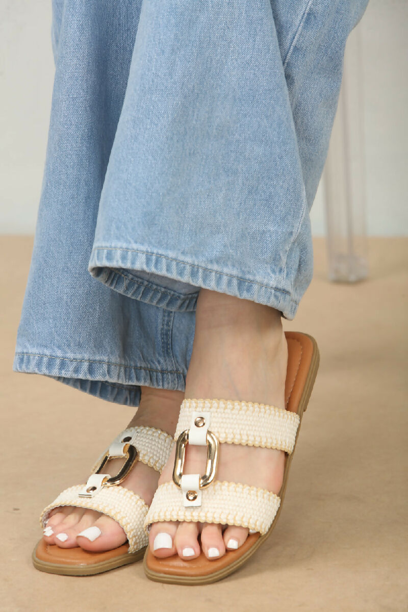 White Designer Contrast Stitch Slider (PACK OF 12 PAIRS UK3-UK8)