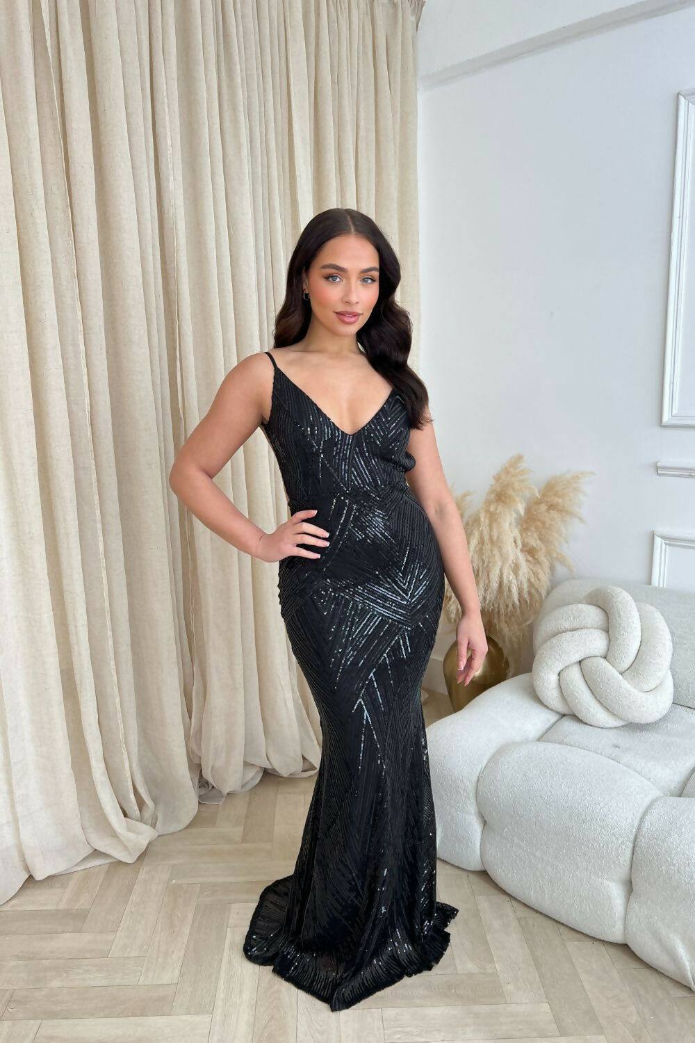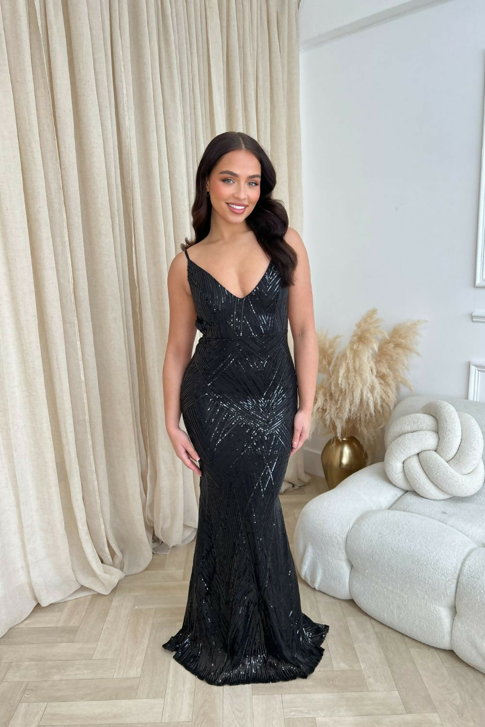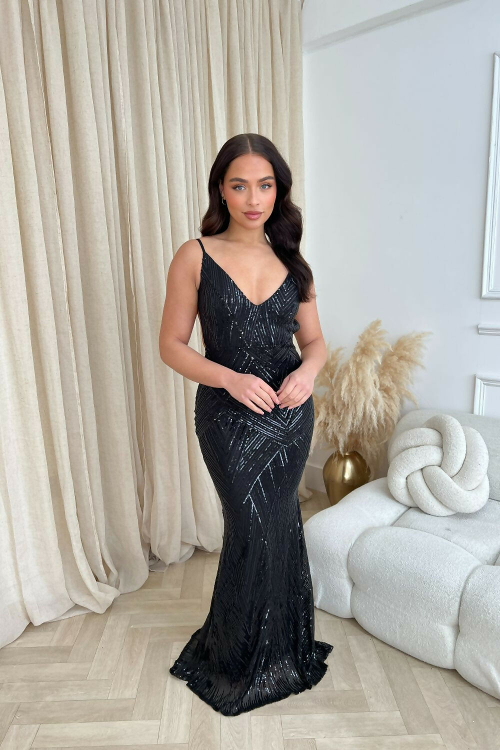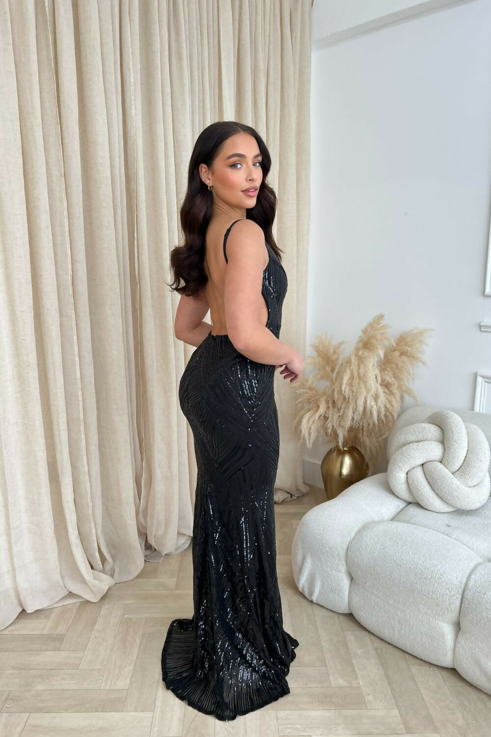 Turn heads with the stunning Endless Backless Sequin Gown in Black. This floor-length masterpiece exudes timeless elegance and glamour, designed with premium sequin embellishments and a striking backless detail. The plunging V-neckline and mermaid fishtail silhouette make it the ultimate statement piece for your boutique’s collection.