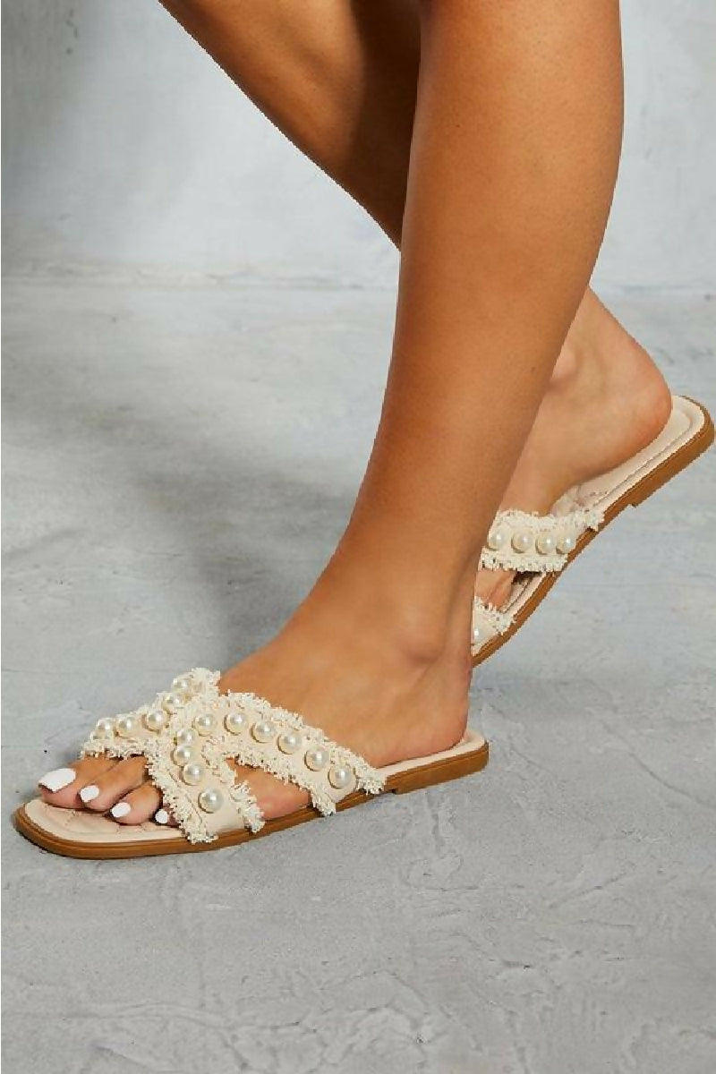 A must-have for summer stock! These pearl detail sliders combine comfort and glamour – ideal for day-to-night resort wear.