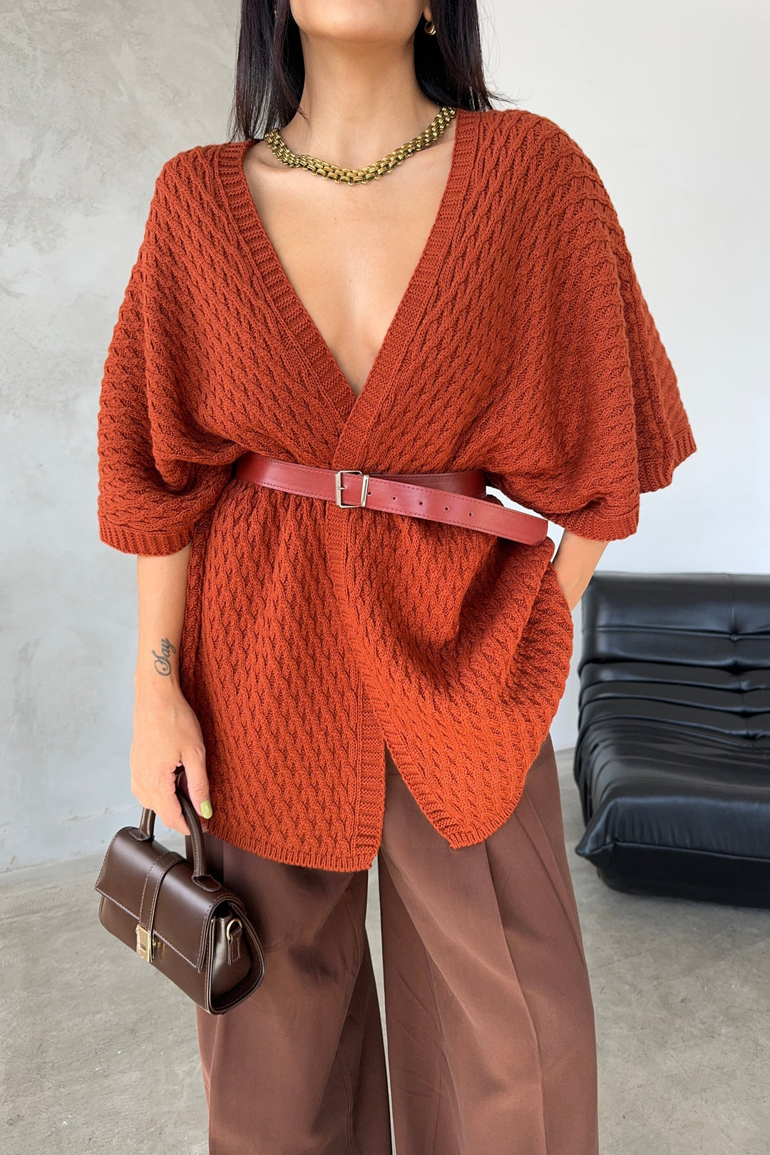 Soft Knit Longline Open Cardigan - Cinnamon Brown