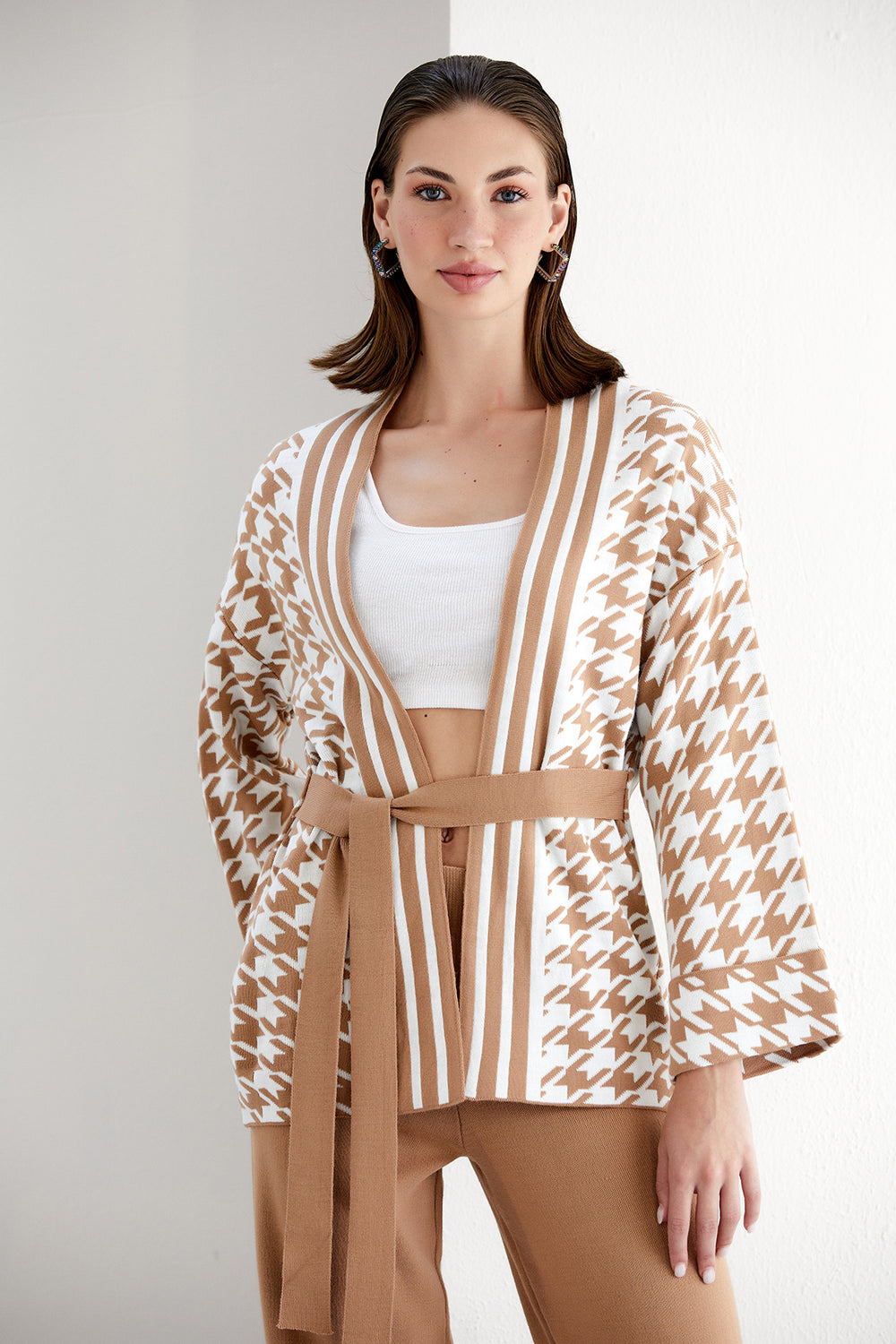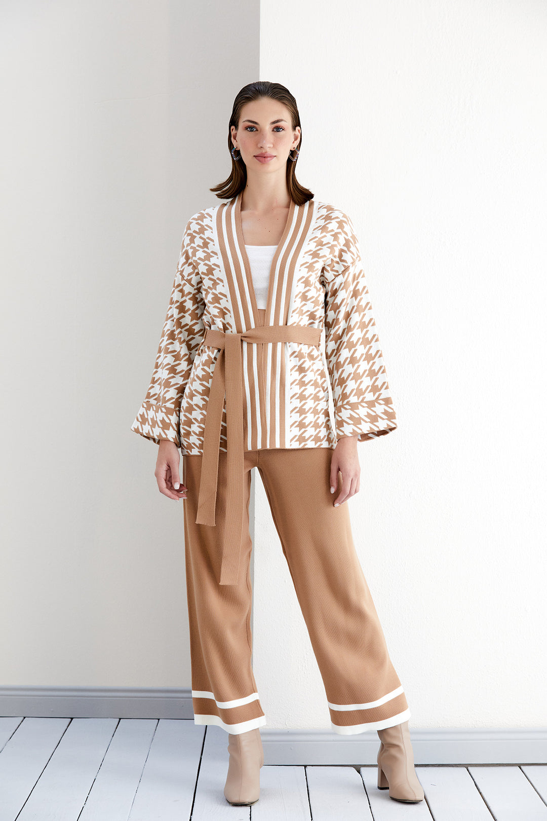 Diamante✨️Leopard Trim Belted Pocket Cardigan (2p.pack)