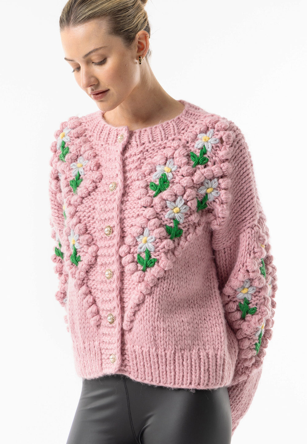 Strawberry 3d daisy knit Cardigan (4p.pack)