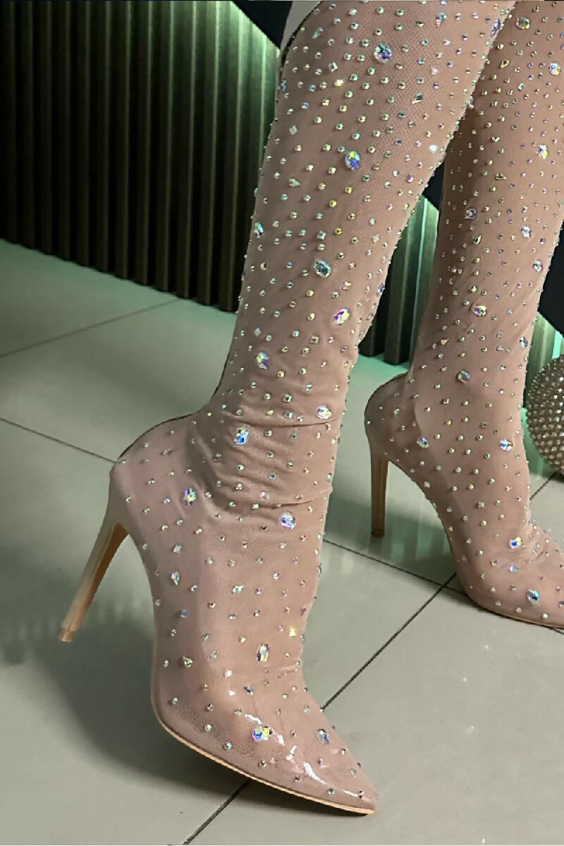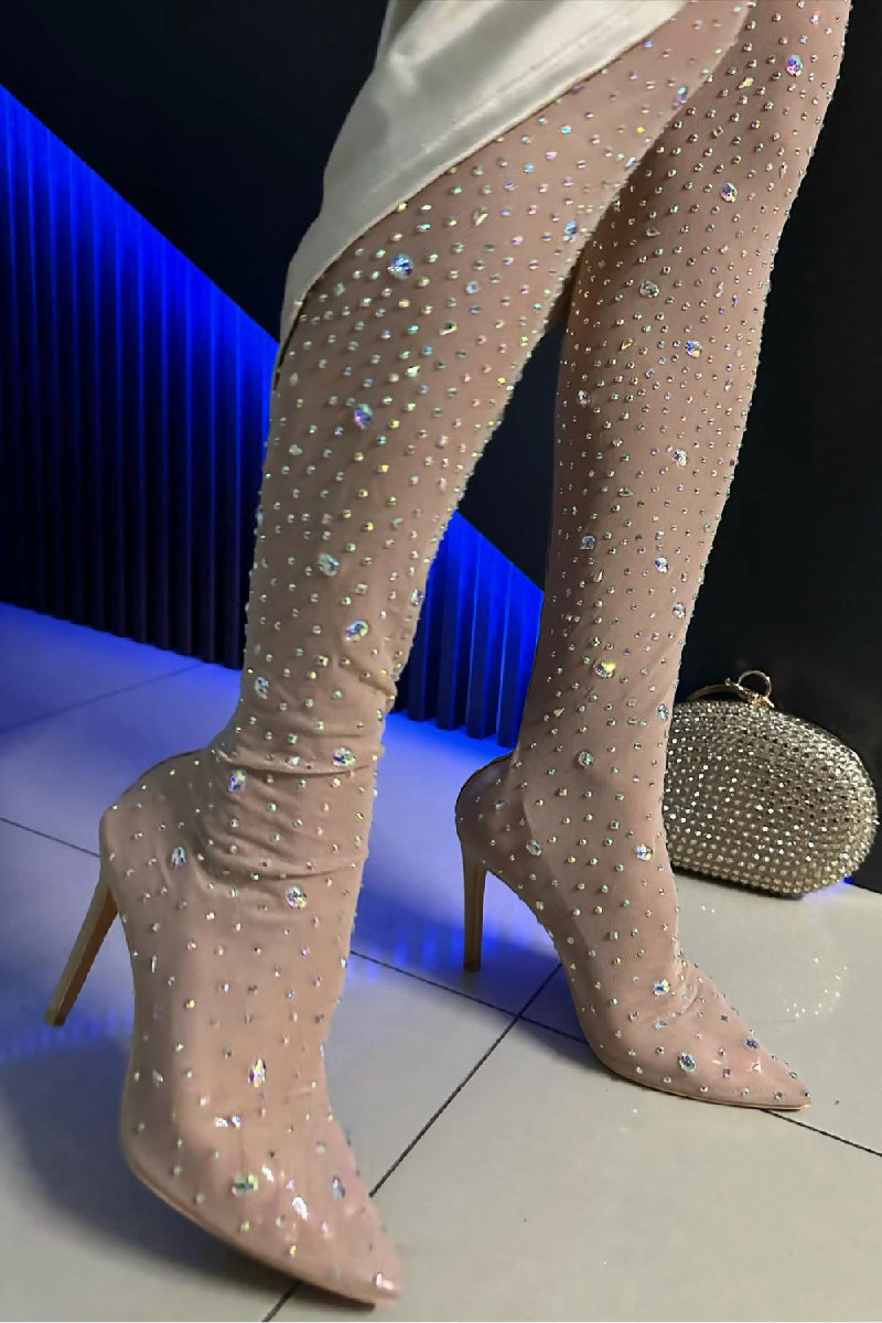 NUDE RHINESTONES KNEE HIGH BOOT (PACK OF 12 PAIRS UK3-UK8)