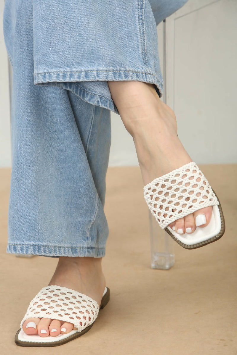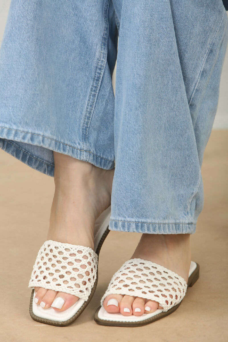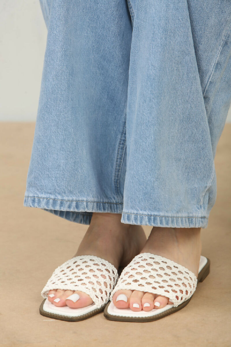 White Mesh Detailed Strap Flat Sandals (PACK OF 12 PAIRS UK3-UK8)