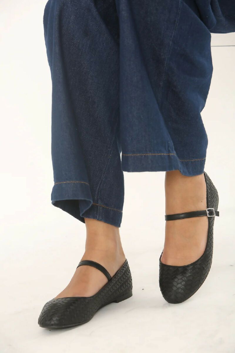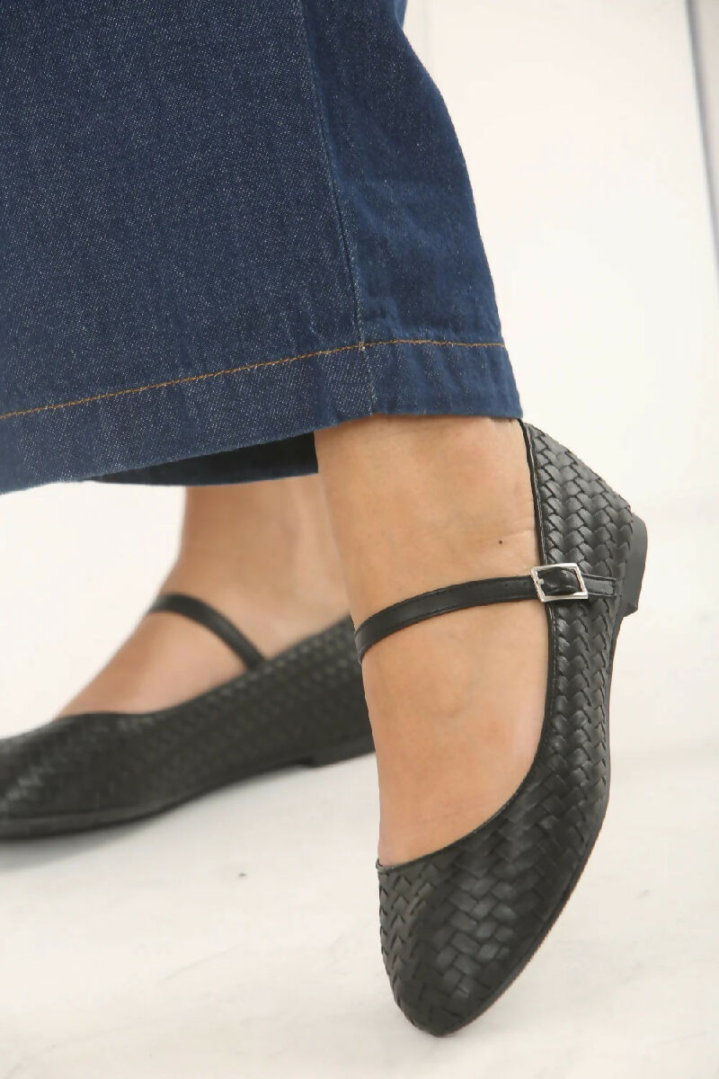 BLACK WOVEN MARY JANE BALLET (PACK OF 12 PAIRS UK3-UK8)