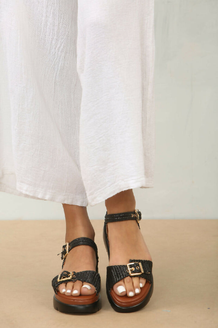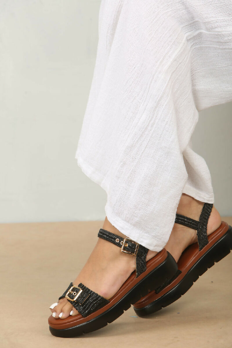 Buckle Detail Raffia Chunky Sandal In Black (PACK OF 12 PAIRS UK3-UK8)