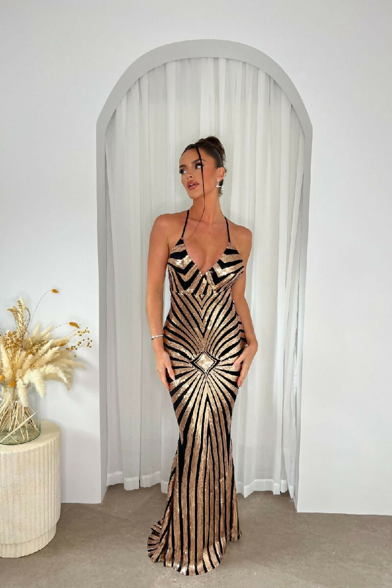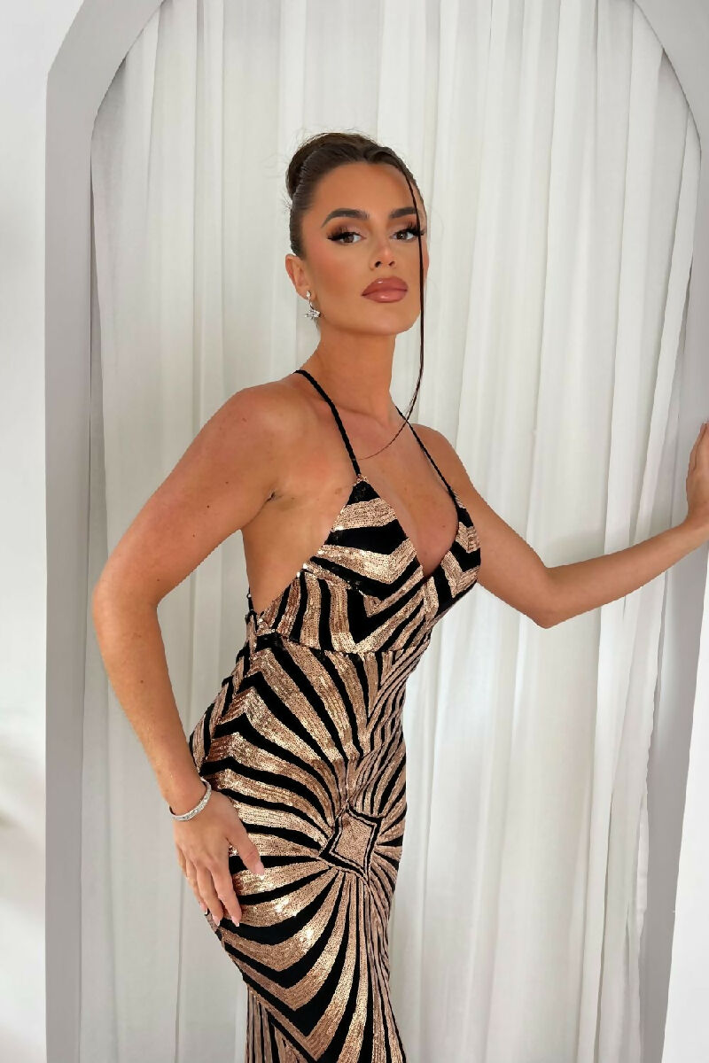 (4-6P.PACK) Timeless Black Gold Sequin Mermaid Maxi Dress