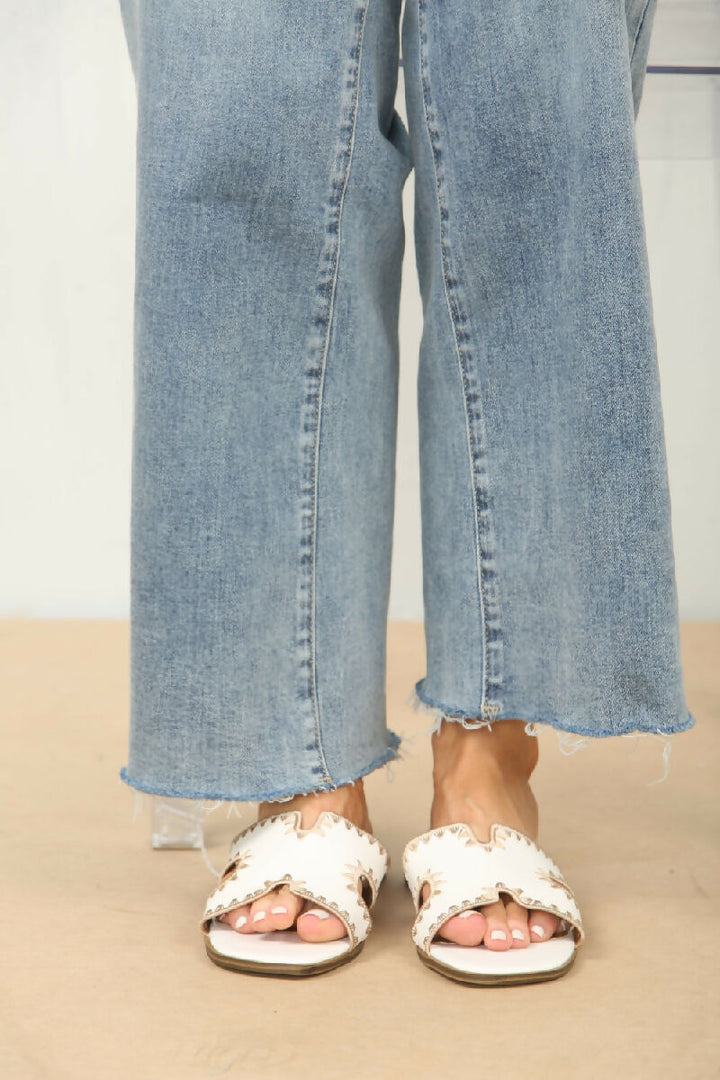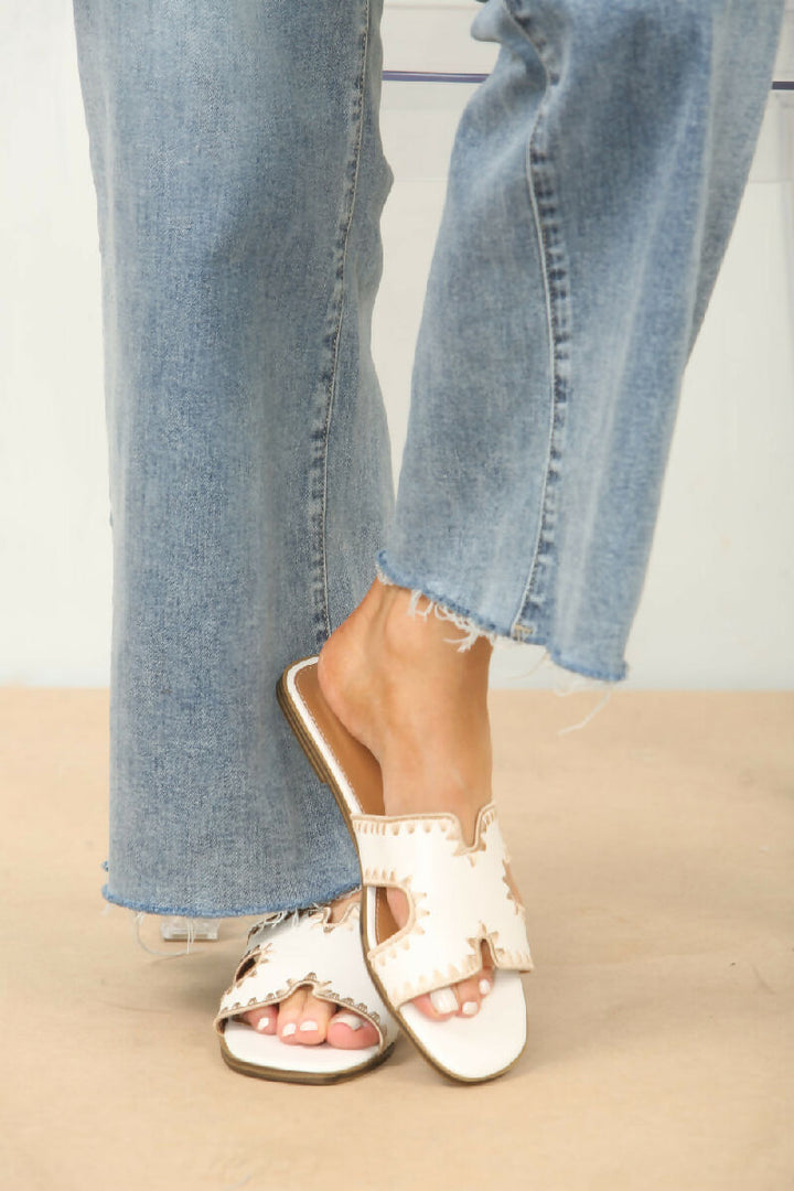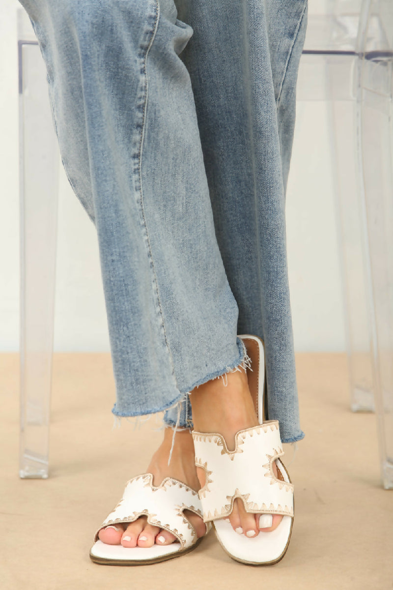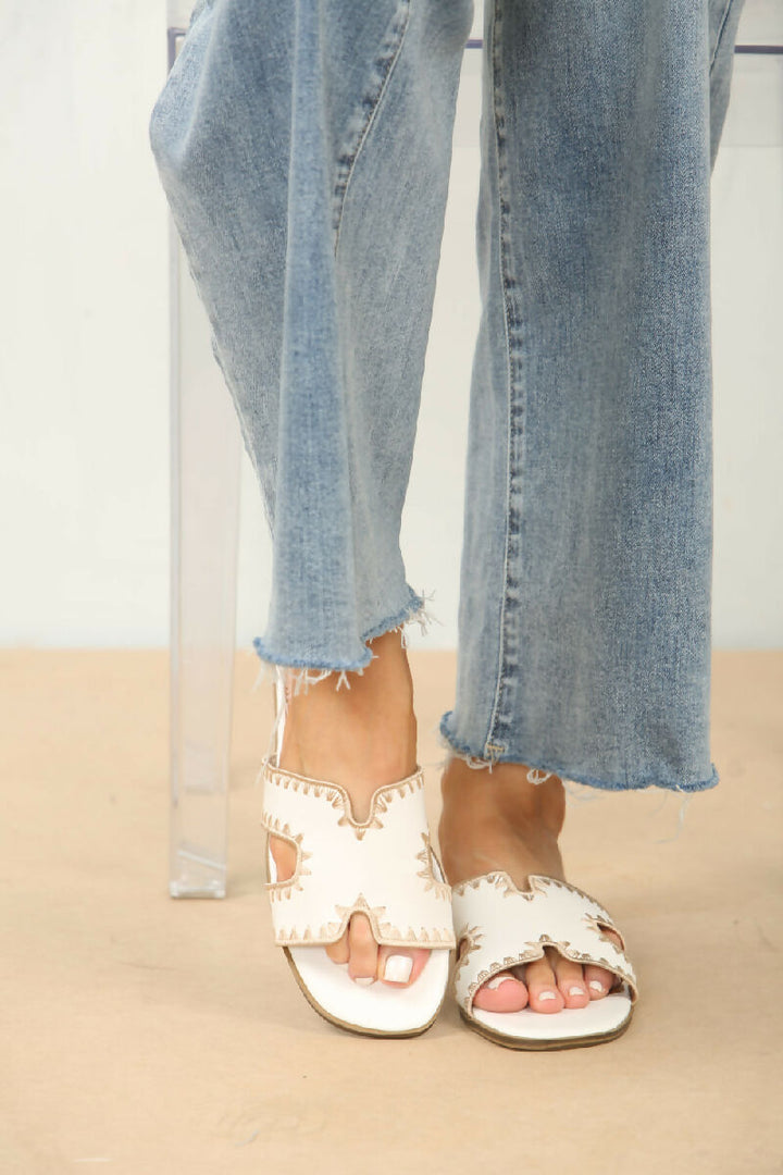 WHITE FAUX LEATHER STITCH DETAIL DESIGNER STRAP SANDALS (PACK OF 12 PAIRS UK3-UK8)