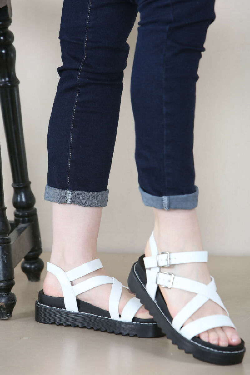 White PU Lizard Strappy Chunky Platform Sandals (PACK OF 12 PAIRS UK3-UK8)